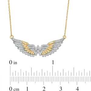 A striking style, this diamond necklace displays your confidence and strength. Created in warm 10K gold, this bold choice showcases the logo lined with sparkling diamonds. Highlighting the center, polished and diamond-adorned feathers shine in a layered wing design. Radiant with 1/4 ct. t.w. of diamonds and a brilliant buffed luster, this look suspends centered along a 16.5-inch cable chain that secures with a spring-ring clasp.This exclusive fine jewelry collection inspires you to wear your strength, confidence and power.