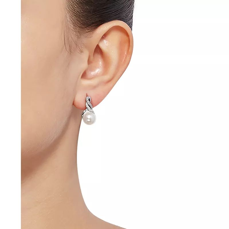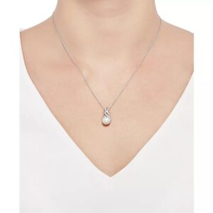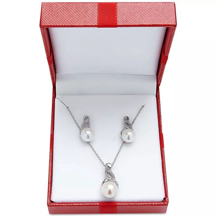 Cultured Freshwater Pearl (8 & 9mm) and Diamond Accent Pendant Necklace and Earrings Set in Sterling Silver or 14k Gold Over Silver